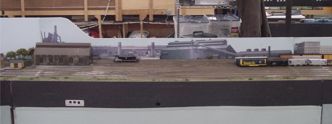 The "Boston Yard West" - This module was originally built for the module group around 199? It is the first part of a staging yard where trains are broken down and built up in a switching operation while the two mainlines continue to function. |