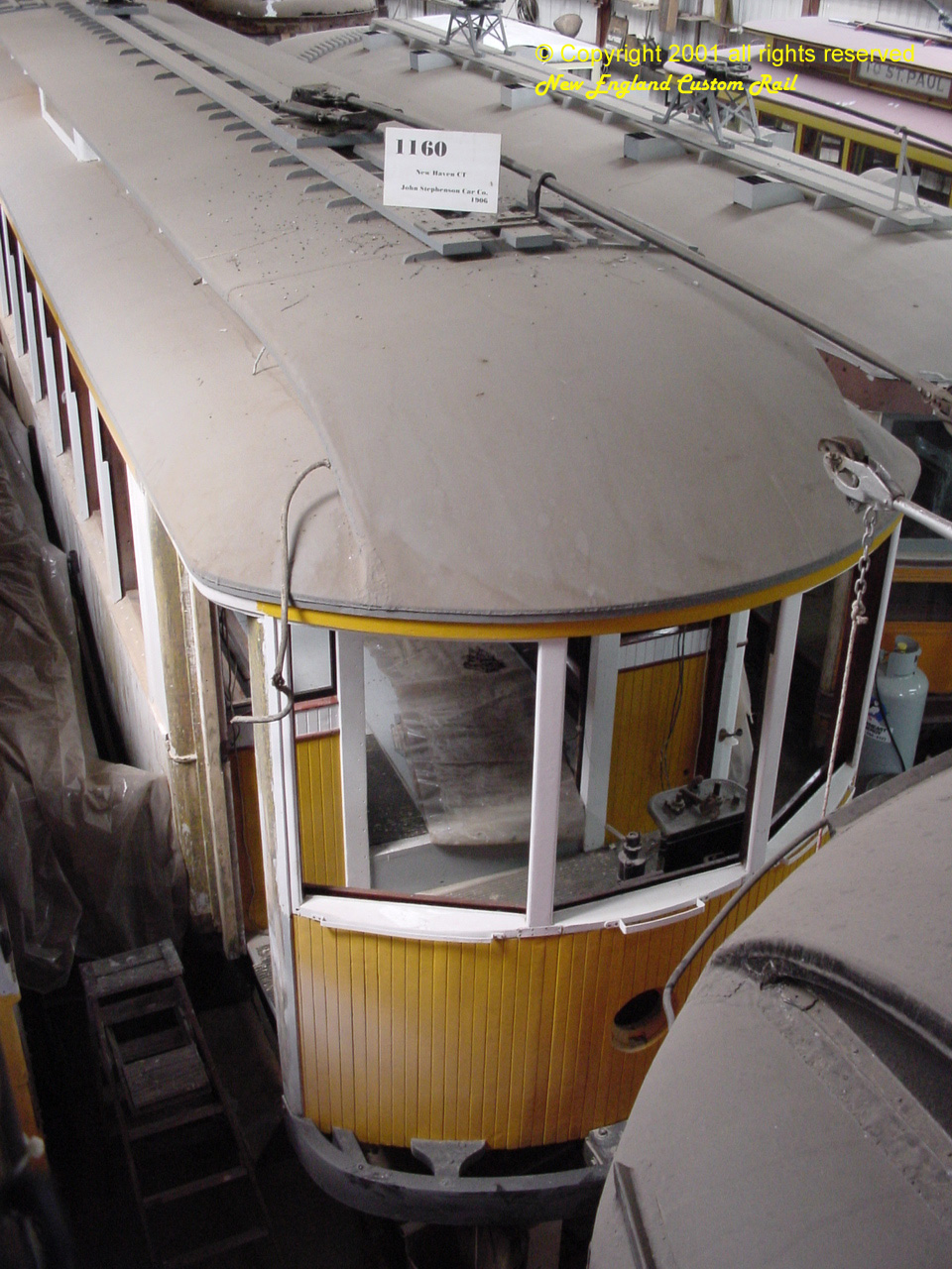 | Trolley restoration in process. June 2001 | |